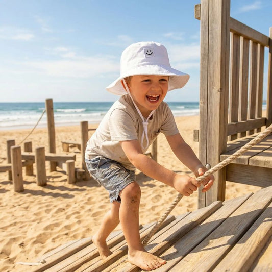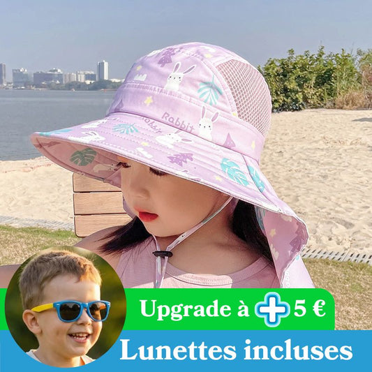 Pour une protection complète, notre chapeau anti UV bébé FunnyBob™ offre une protection solaire à 360° qui couvre non seulement la tête mais aussi la nuque, zone particulièrement sensible chez les tout-petits.